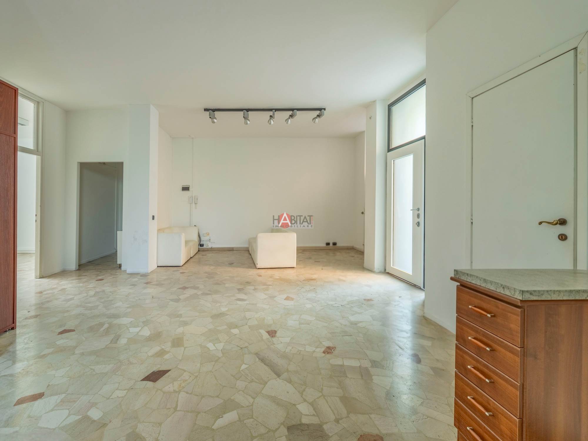 L’immobile è caratterizzato da una distribuzione versatile degli spazi e dalla presenza di tre ingressi, ed è attualmente composto da: spaziosa zona living con cucina a vista, due ampie camere da letto e bagno.