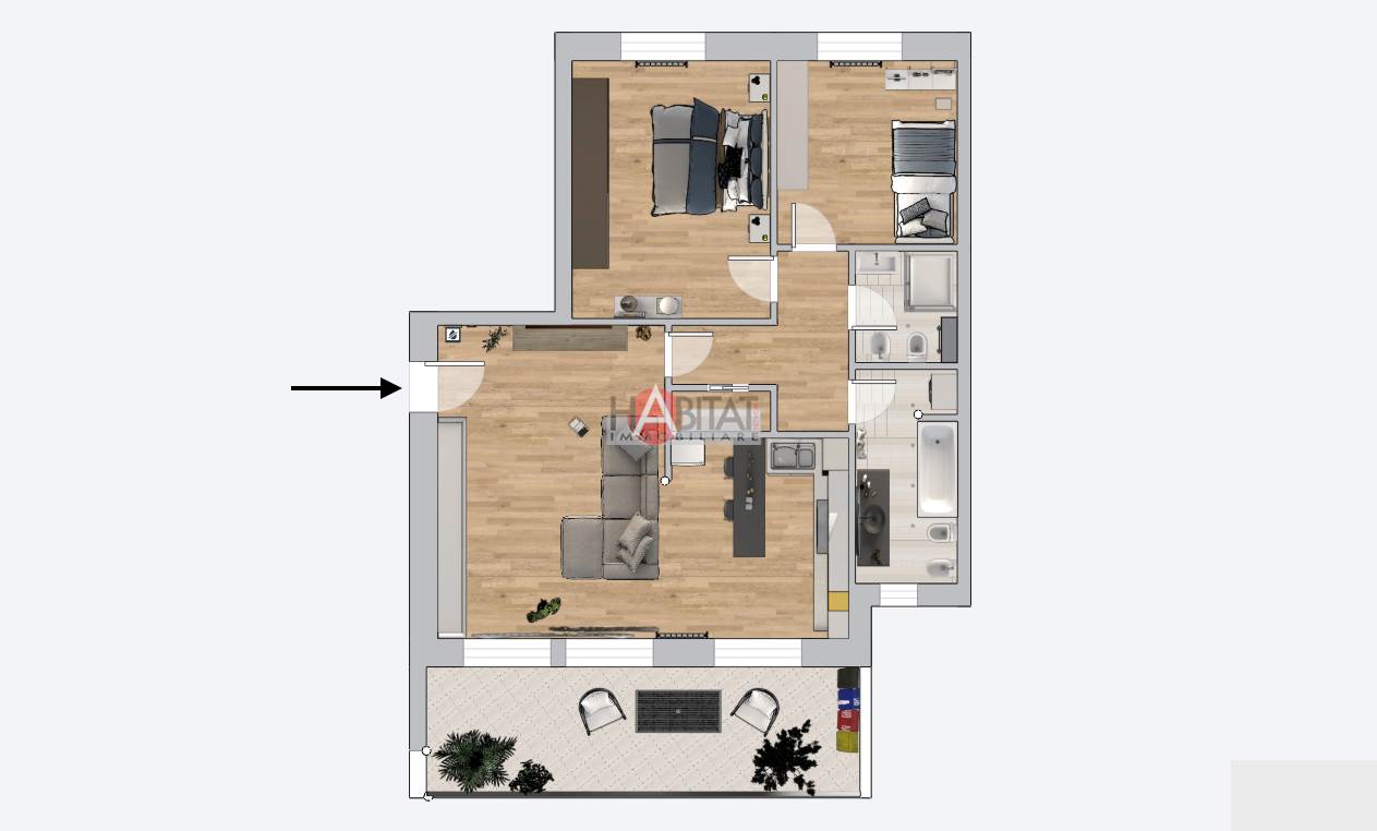 Via Delle Risaie 3 – In ottimo stabile di recente costruzione, all'interno del complesso redisenziale “Habitat Basiglio”, proponiamo luminoso trilocale, così composto: ingresso su zona living con cucina abitabile a vista e accesso ad uno spazioso terrazzino, disimpegno, comodo ripostiglio, due camere da letto e doppi servizi. Completa la proprietà vano cantina e box. Ottime condizioni interne. Doppia esposizione interna, riscaldamento centralizzato e aria condizionata dual split.
